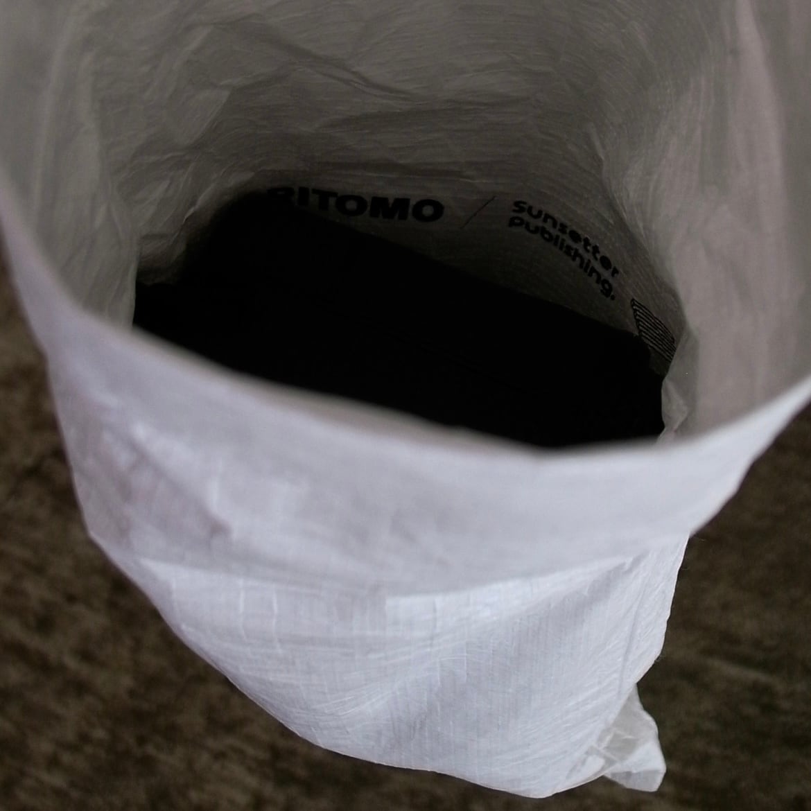 今回は防塵性と撥水性が高まるように裏地にも同じtyvekの生地を採用し、真っ白でミニマルなプロダクトとなりました。(内側にロゴプリントあり)